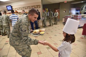 Nov. 28, 2017 Sheppard Airmen give thanks Sheppard Air Force Base Airmen were served bountiful Thanksgiving meals by area Texoma families as part of Operation Thanksgiving, and base leadership worked the serving lines at dining facilities.