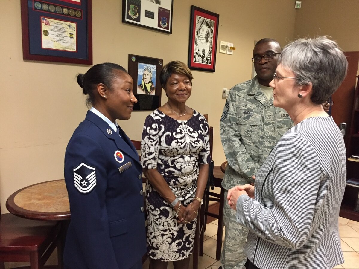 Love of career leads Mickens to SecAF award Published May 23, 2018 By Airman 1st Class Pedro Tenorio 82nd Training Wing Public Affairs SHEPPARD AIR FORCE BASE, Texas -- Awards, a higher calling, coins, satisfaction, ribbons. People do things for different reasons. Be it recognition or passion, one senior noncommissioned officer here on Sheppard blends the two together so well to make recagastion…pagonission? On May 8, 2018, Master Sgt. Terrell Mickens, NCO Academy director of resources and first sergeant at Sheppard Air Force Base, Texas, was awarded the Secretary of the Air Force Leadership Award in the Senior Noncommissioned Officer Category for Air University. When first hearing of the award, Mickens said she was attacked by feelings of confusion followed by the question “what’s that?” “I was just standing here working and my supervisor comes in and closes the door behind him and is like, ‘I don’t know what to tell you but … ’” said Mickens. “He said he got a message from headquarters that I won, and before I learned about the award I was like, ‘What does this mean?’” (From left) Terrell Mickens' mother, Master Sgt. Terrell Mickens and Chief Master Sgt. Wendell Snider pose for a picture after the SecAF award ceremony at Maxwell Air Force Base, Alabama, May 8, 2018. (Courtesy photo) Photo Details / Download Hi-Res Her confusion then transformed into pride as she would gather up her entourage of her proud mother and her proud supervisor and proceeded to Maxwell AFB, Alabama, for the award, headed by Secretary of the Air Force herself, Heather Wilson. “I don’t really get star struck, but when I was there and she was talking to everyone one by one and eventually came down to me, I was just like, ‘Uhh wow,’” Mickens said. “She was just such a real person. Someone this high up and you can just talk to. It’s cool … I got star struck.” After her meeting with one of her new heroes, she said she noticed a change in how she worked and how she had to carry herself. She said she’s always had her core values, but now she makes more of an effort to carry them with her everywhere. “It’s not that you walk with your chest out and ‘oh look at me,’ but it’s now people are looking at you. Other NCOs, other leadership and they’re looking like, ‘What are you going to do now,’” Said Mickens. “I realized people are going to look at me and be like, ‘Well what makes her different?’ you know? It caused me to really check myself. To keep living the right way.” Mickens said getting recognition for the SecAF SNCO category award revealed her passion. Her passion to care for others the way her leadership cared for her. “When you’re a young Airman, you’re really taking care of yourself, trying to figure out what you’re doing or trying to get your schooling,” Mickens said. “But when you become a senior NCO, it’s all about taking care of other people. Even the people above you.” Her focus now turns to help the new NCOs coming through the academy realize their goals and missions and help her leadership as they helped her. “You know when you do your job you do it 100 percent, and that’s my goal all the time,” Mickens said. “If I’m going to do something, it’s going to be the best I can. Whoever I’m working for I’m going to do my best for them. I think that’s why my leadership wanted to recognize me for that.” Mickens has embraced her leadership role at the NCOA ever since she was just an instructor, yet now as the superintendent, her goals and mission has not changed. “No matter where you are, or what you do, if you’re on the bottom or the top, it doesn’t matter,” she said. “If you love what you do and understand your value and purpose, you’ll make it. If you’re the Airman taking out the trash, do it with enthusiasm. Loving what you do is No. 1. Second is the support.” Mickens’ special duty at NCOA will be coming to an end soon. She will be returning to the paralegal world this August. Mickens’ also wanted to give a special shout out to Chief Master Sgt. Wendell Snider for teaching her how to take care of people and also a shout out to her faith who has always pushed her back up after she felt down.