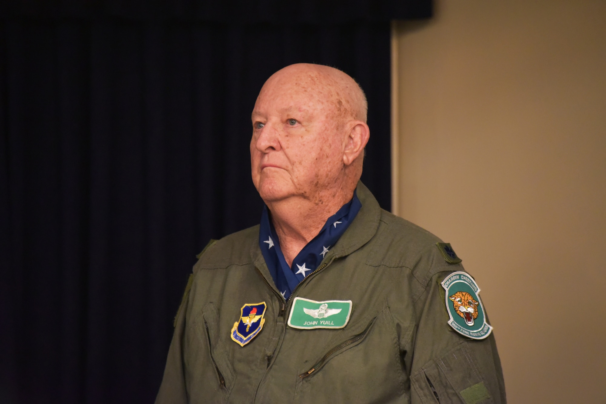 No good options: Vietnam POW shares story of captivity Published Sept. 24, 2018 By John Ingle 82nd Training Wing Public Affairs SHEPPARD AIR FORCE BASE, Texas – “Stop. Think. Collect your wits.” It was the hardest thing Lt. Col. John Yuill had to do after the B-52 Stratofortress he and five crewmembers were flying in over Hanoi, Vietnam, was struck by two surface-to-air missiles on Dec. 22, 1972, during their third mission in four days as part of Linebacker II. It was also a reminder from his Dash-1, the owner’s manual for the B-52, that helped him make a decision that would save his life as well as the five other Airmen aboard the bomber. Yuill, now retired, recounted the day he became a prisoner of war with Airmen at Sheppard AFB as part of POW/MIA Day events. The flight commander only had a few moments to make a decision on whether to stay with the aircraft and get out of the area, or have everyone bail out over enemy territory. “I felt there were no good options,” the 84-year-old said. “I sure as hell wasn’t interested in jumping out of that airplane. I had been flying airplanes for 15 years and never stepped out of one in flight. I wasn’t interested in doing that in the first place and I really wasn’t interested in doing it over enemy territory where I had been bombing their capital for three days.” Yuill made the decision for the crew to bail out, the beginning of his more than three months in captivity. The colonel landed in an agriculture area not far from a barn. He recalled getting out of his parachute and taking off his helmet when he began hearing voices in the distance and was soon surrounded by about a dozen people. The North Vietnamese people, he said, helped him out of his flight gear, all the way down to his underwear. “I was standing there in my shorts,” he said. “It was a bit nippy, even for North Vietnam.” But, he was alive. What’s more, he was surprised by the way the group had reacted toward him. He expected to see hatred, he said, but what was in their eyes was curiosity. After being moved to a couple locations the first two days, his group eventually came upon what appeared to be two enemy military members. One, he said, had what he had initially anticipated – a look of hatred and that he’d be tortured if they were alone. “My sole mission in life was to not get isolated,” he said. Yuill said he was roughed up at that location before being taken to a truck, where he saw the first of the other five crewmembers. Before being blindfolded, he saw another three. Five of the six, he said, had survived the bail out. He said he later saw the sixth crewmember, making them the only full B-52 crew to survive being shot down and captured. The colonel said many of the targets they had bombed up to the beginning of Linebacker II had been “meaningless.” The new bombing campaign, though, seemed as those they were hitting significant objectives that would lead to something, and it did. A cease fire agreement was reached in January 1973 and POWs, including Yuill and his crew, would soon go home. During the first few days of Linebacker II, 10 B-52s and their crews of six were shot down. One aircraft had an additional crewman. Of the 61 Airmen shot down, 33 were released as part of Operation Homecoming in 1973. “I was fortunate enough to be in the half that survived,” he said. “Not only was I fortunate in that respect, but of those 10 B-52s, only one entire B-52 crew survived and came home and that was my crew. So, I was very, very fortunate to have my entire crew survive.” Knowing a large part of Sheppard AFB’s mission is to train aircraft maintainers, Yuill said it takes a team effort to fly an airplane and he wishes he could go back and thank the maintainers who ensured his aircraft was airworthy. He asked those in the training arena to impart upon their Airmen the importance they play in the mission. “I wouldn’t be able to fly the airplane if maintainers weren’t doing their job,” he said. “If that airplane isn’t ready to fly and the systems in it aren’t working properly, I’m not going to be able to do my job effectively. So, point out to them that, yeah, you may not be the one you read about or hear about … but if you don’t do your job, I can’t do my job because I’m not going to have the equipment to do the job that I have to execute.” In addition to sharing his story with Airmen at Sheppard, Yuill also helped kickoff a 24-hour POW/MIA vigil in observance of those lost and captured in service to the country.