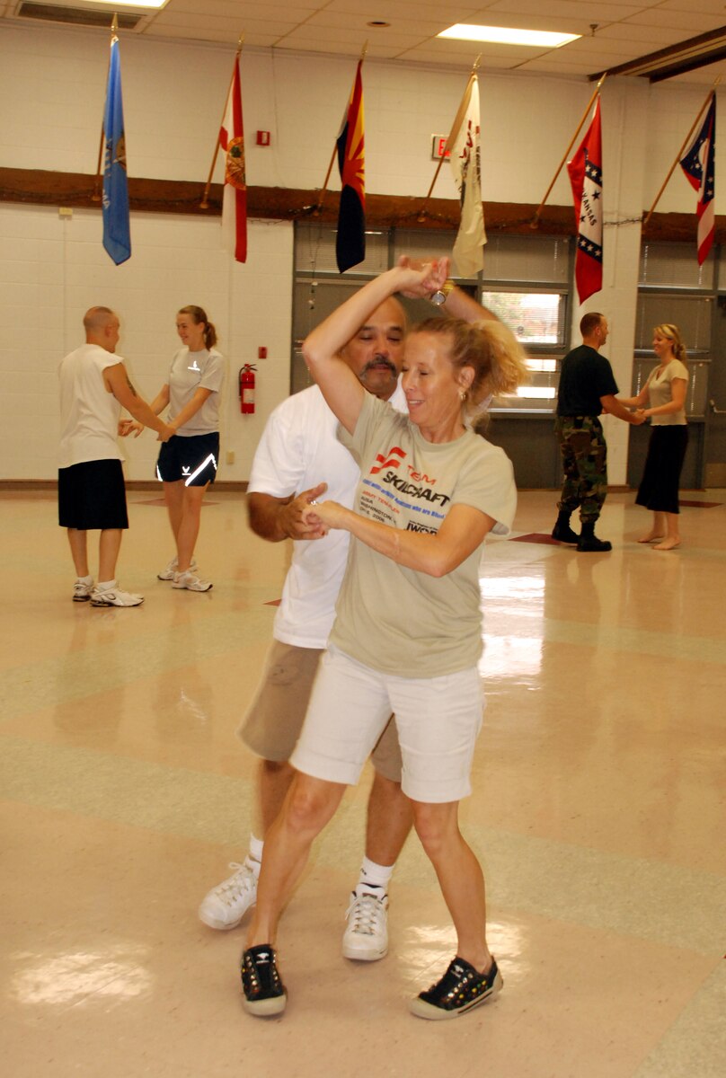 Jump, Jive & Wail: Swing dance classes will add style, authenticity to AF60 Ball Published Sept. 6, 2007 By Airman 1st Class Jacob Corbin 82nd Training Wing Public Affairs SHEPPARD AIR FORCE BASE, Texas -- Eighteen couples rush to the middle of the dance floor, each step they take seeming to transport the assembled crowd back in time. The dance beat is recognizable and infectious, and watching the practiced steps of these couples is a sight to behold. No odd anomaly is taking place at this celebration though; the time-traveling display of swift-footed dance moves is the culmination of two months of hard work for 36 Sheppard men and women. The couples are volunteers, who answered the call of the 60th Anniversary Ball committee and have spent their free afternoons learning a swing-dance number. There is a wide variety of ranks, ages from various organizations, including both civilians and active duty members. The choreographed display was added to the Sept. 22 ball's festivities in the hopes it would get the attendees pumped up to dance, said Tech Sgt. Holly Long, chair person for the AF 60th Anniversary Ball Entertainment Committee. The team, aptly named The Sheppard Ambassadors of Swing, will perform to the song "Sing, Sing, Sing" a Benny Goodman tune from the 1940's Swing dancing craze. Swing dancing was a phenomenon that swept the world with its toe-tapping rhythms and dance beats in the WWII era. "It's going to be very exciting," Sergeant Long said. "I'm very proud of what they're doing." This sentiment is echoed by Maj. Michelle Kastler, the AF 60th Anniversary Ball Chairperson. "To take our own personnel, with no specific dance background, and produce our own entertainment for the ball will make it a memorable segment of the evening. It is also a piece of history and a skill the members will take with them. We have a great cross section of dedicated people from across the base on the team," she said. On the night of the ball, the couples will perform the number dressed in "heritage" uniforms, themed on the early days of the Air Force. The AETC Air Force Band of the West "Dimensions in Blue" ensemble will also be dressed in full Army Air Corps "Glenn Miller" style uniforms as they play music from the earliest days of the Air Force. The couples have practiced twice a week since June 30 in preparation for the event. Some of the couples, like Staff Sgt. Dylan Lamont and Tech. Sgt. Latreece Shephard, both instructors with the 383rd Training Squadron, have taken their own time to practice as well. "I've wanted to learn swing dance for a while," Sergeant Shephard said. The sergeant also said it's important to know where we came from, to know our heritage, and be able to continue these traditions for the next generation of airmen. Major Kastler stated that practice and repetition is key. "Simply learning the dance is one thing, but to also try our hand at choreography, that is the true challenge. These Ambassadors of Swing have truly shown what they can accomplish in a short time," she said. For those attending the Air Force ball, they'll get a unique window into Air Force heritage. "They're in store for an exciting performance," Sergeant Long said. "It's going to be a one of a kind event." "Having the dance team there will also help to bring other attendees to the dance floor," Major Kastler said. "Once you try a few steps, most people can catch on enough to at least enjoy the evening's dance. Having this event in Hangar 1045 matches what we would have seen across Europe in 1947." The theme of the ball is "Heritage to Horizons ...Commemorating 60 years of Air and Space Power." Tickets are selling quickly with unit first sergeants, and all personnel are encouraged to dress in heritage uniforms. Swing dance lessons are available through the Community Activities Center @ 676-3861. For more information on the wear of heritage uniforms, please access the Sheppard Aim Points or Maj Michelle Kastler @ 676-3873.